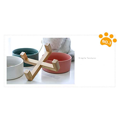 EUYIMOMO Dispenser Cibo Gatti,Ciotola per Animali in Ceramica, Protegge la Colonna vertebrale cervicale Ciotola per Animali Domestici-Doppia Ciotola Grigia + Cornice in Legno Media