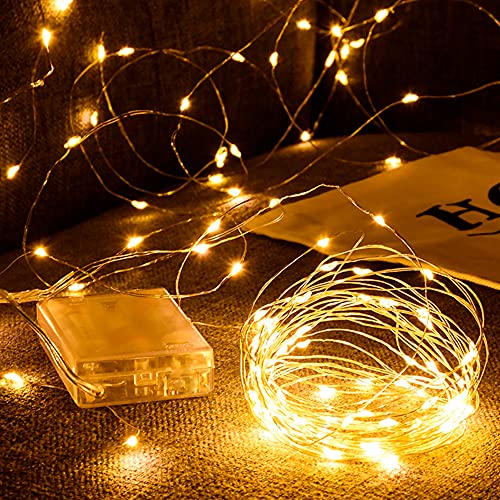 EvaStary Luci Leggiadramente A Batteria, 5M 50 LED String Lights, Illuminazione Decorativa Impermeabile, Luci LED Bianco Caldo Per Natale Camera Da Letto Festa Giardino Matrimonio Festival All'aperto