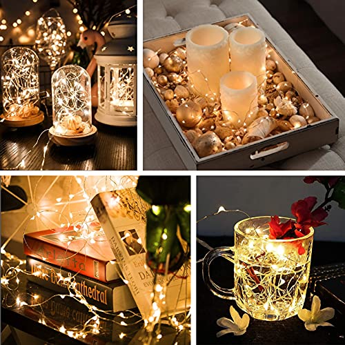 EvaStary LED Stringa Luci a Batteria, 20 LED 2M Mini Lampada a Fili di Rame Impermeabile Bianco Caldo, Luci LED Micro Catena Luminosa Luci d'atmosfera per Bottiglie Fai da te, Feste, 6 Pezzi