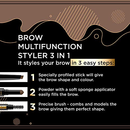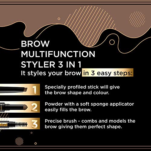 Eveline Cosmetics Brow Styler Matita per sopracciglia multifunzione 3in1, n. 01 marrone medio