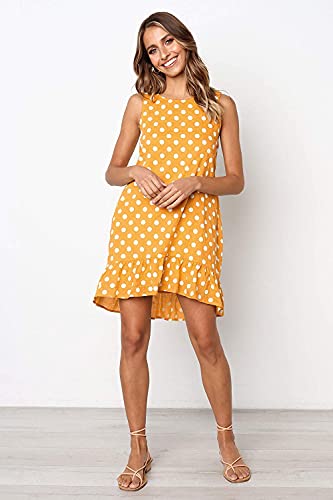 Evelure Donna in Chiffon Abiti da Abito Estivo a Pois con Volant Mini Abito Manica Corta Abito da Spiaggia Abito da Festa Abito da Sposa (XL, 103-Yellow)