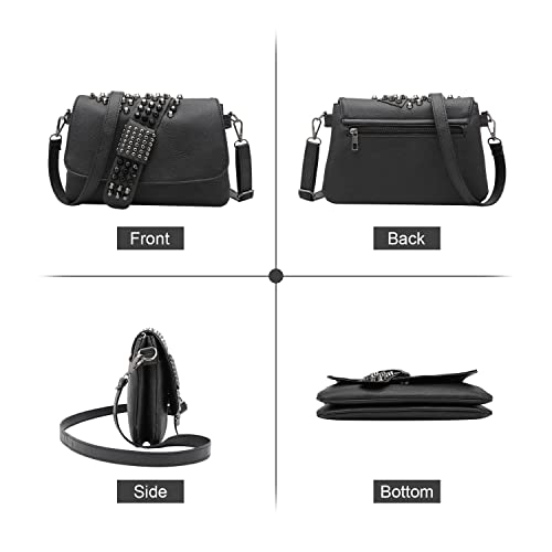 EVEOUT Borsa a tracolla da Donna con decorazioni teschio punk,Borsa a tracolla in PU gotiche con teschi e catena corta (Borsa a tracolla a tracolla con teschio D)