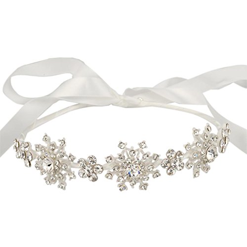 Ever Faith Boho nuziale del fiocco di neve del nastro del fiore dei capelli della fascia silver-tone trasparente N04974-1