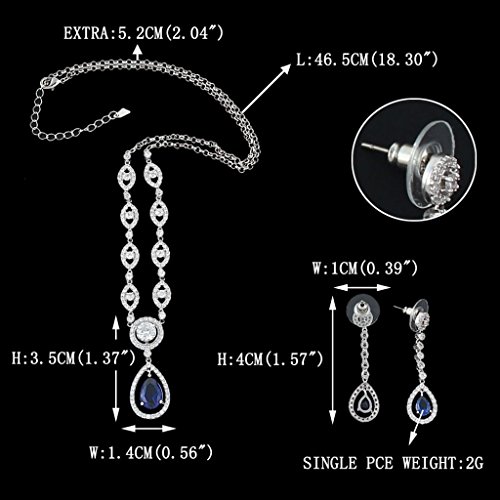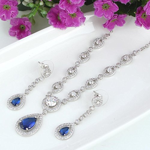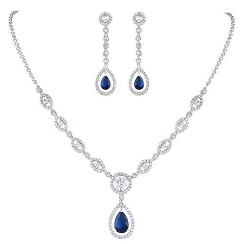 EVER FAITH Collana Prom lacrima Orecchini Set Zaffiro Colore CZ Silver Cristallo-Tone N04422-2