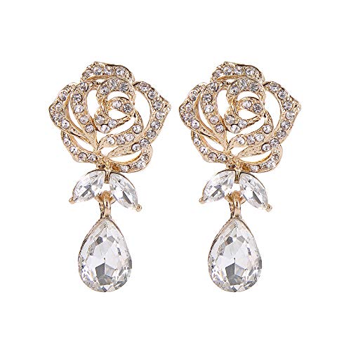 Ever Faith-Orecchini Donna "Rose", orecchini donna pendenti a clip con Cristallo Austriaco,Una confezione regalo