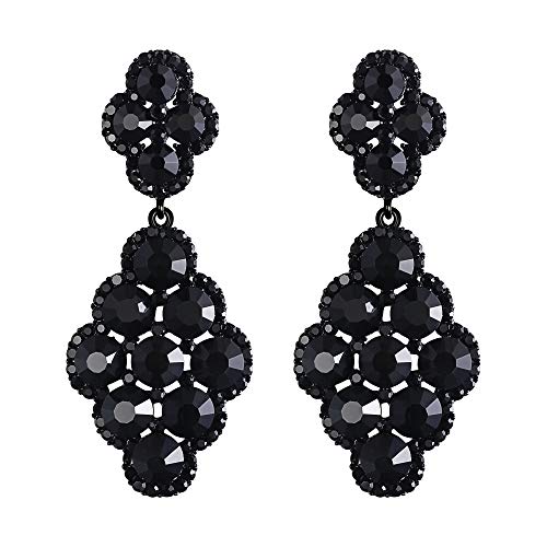 EVER FAITH Orecchini Donna da sposa Rombo Rhinestone cristallo Hollow Lampadario Pendente Orecchini Nero Nero-fondo