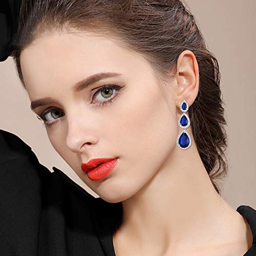 EVER FAITH Orecchini Donna Zirconia cubica Sposa Fascino 3 goccia Lungo Pendente Orecchini Sapphire Blu