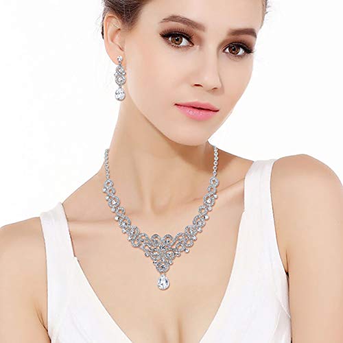 EVER FAITH Parure Gioielli Donna Cristallo Matrimonio Floreale S-Forma Goccia Collana Orecchini Set Trasparente Argento-Fondo