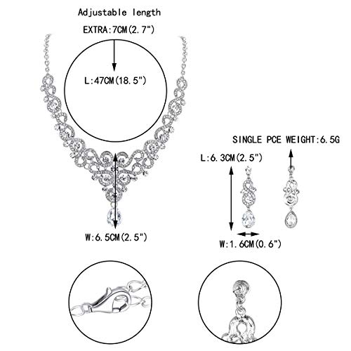 ❤MISURA: Lunghezza della collana: 47cm(18.5in)-54cm(21.2in), Dimensione dell'allegato: 19cm(7.5in)-6.5cm(2.5in), Dimensione dell'orecchino: 6.3cm(2.5in)-1.6cm(0.6in), Ogni peso orecchino: 6.5g, Solo per forato le orecchie.
