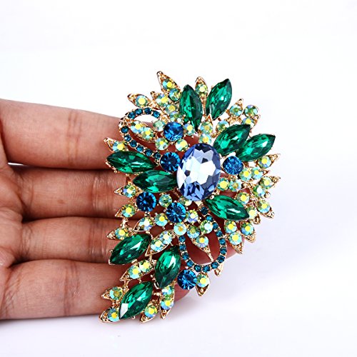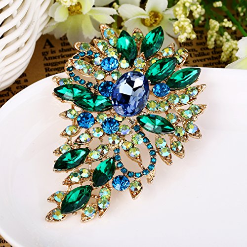 EVER FAITH Spilla Regalo, Marquise Cristallo Austriaco Sposa Mazzo di Fiori e Foglie Spilla Blu w/Verde Scuro Oro-Fondo