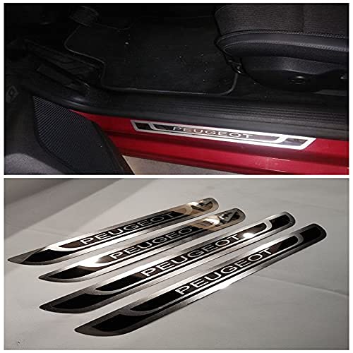 Ever TA 4 Pezzi Battitacco in Acciaio Inossidabile per Auto Sticker per Peu-geot 308 208 508 207 3008 2008 307, Esterno Battitacco Protezione Plates Anti-Graffio Scuff Adesivi Decorativi Accessori