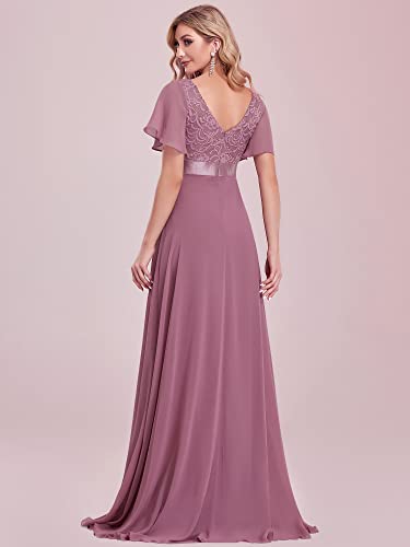 Ever-Pretty Abito da Damigella Scollo a V Maniche Corte con Volantes Stile Impero Linea ad A Lungo da Donna Orchidea 48EU
