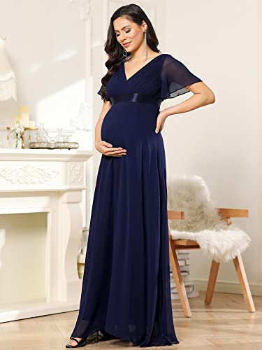 Ever-Pretty Abito da Sera Premaman con Volantes Scollo a V Stile Impero Linea ad A Lunghezza del Piano da Donna Blu Navy 38EU