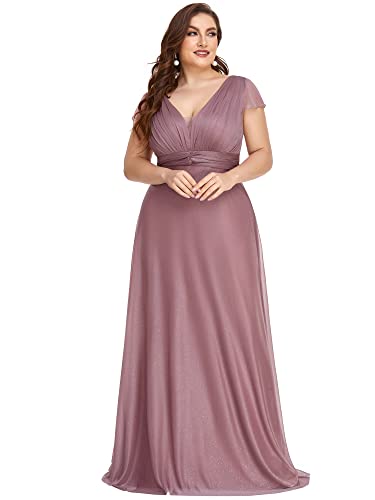 Ever-Pretty Vestiti da Sera Maniche Corte Linea ad A Stile Impero Scollo a V A Bustier Tracolla Non Regolabile Donna Orchidea 48EU