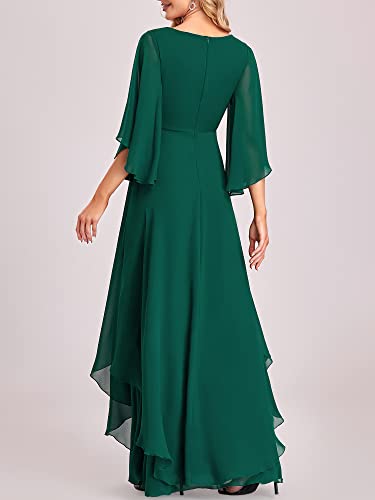 Ever-Pretty Vestito da Ballo Scollo a V Manica 3/4 Stile Impero Orlo Asimmetrico Chiffon Lunghezza del Piano da Donna Verde Scuro 46EU