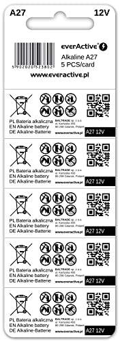 EverActive 60 x batterie alcaline A27,12 V 25 mAh 27 mAh EL-812 MN27 G27A LR27A - 12 blister