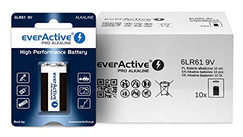 EverActive - 10 batterie alcaline Pro da 9 V, 6 LR61 6F22, massima potenza, 5 anni, 10 blister
