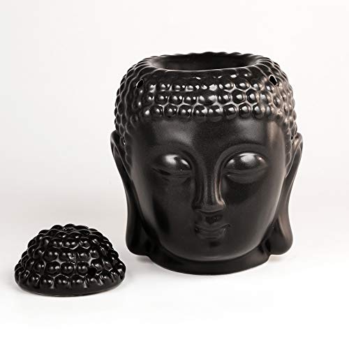 EVERGD - Bruciatori a candela a forma di testa di Buddha, con cucchiaino da lumino, per aromaterapia, per yoga, spa, casa, ufficio, regalo decorativo (nero, 1)