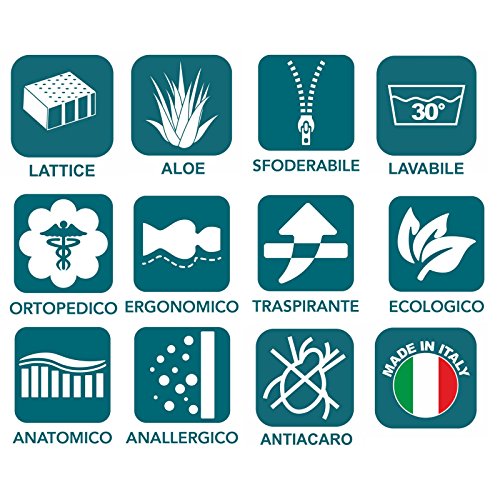 2x Coppia Guanciali in fiocco 100% Lattice adatti a chi ha problemi di cervicale, segue la forma del collo e della testa senza creare punti di pressione