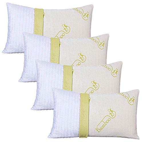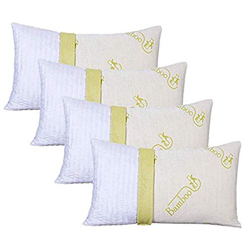 EVERGREENWEB - 4 Cuscini Fiocco di Memory Foam con Fodera fibra di BAMBOO 42x72 alti 15 cm Modello Saponetta Guanciali adatti per Dolori Cervicali Federa Sfoderabile e Lavabile Cuscini Letto Antiacaro
