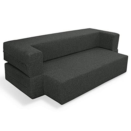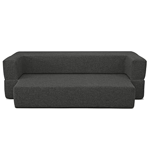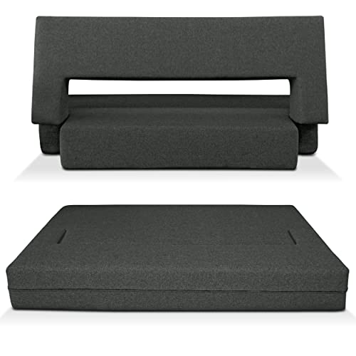 EVERGREENWEB Divano Letto 2 Posti Rivestimento Sfoderabile e Lavabile, Divano Design Trasformabile in comodo Materasso Matrimoniale, Kit Lenzuola e Piumino, 2 cuscini omaggio Color Antracite|Tetris
