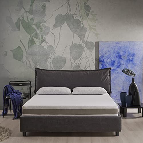 EVERGREENWEB - Letto Contenitore, Rete Doghe in Legno, Materasso Matrimoniale Sfoderabile e cuscino in Memory Elegante Testiera Tessuto Imbottito SFODERABILE color Tortora Ideale per Camera da Letto