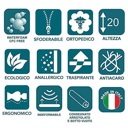 ✅ Materasso in Waterfoam alto 20 cm, Water Foam ad alta resilienza, poliuretano in schiuma espansa ad acqua, Ecologico. Ideale per ogni Rete o Letto Singolo, Fodera colore Bianco in Offerta con CUSCINO Letto incluso GRATIS in Regalo Guanciale in Fiocco Memory Cervicale del valore di 30 € !