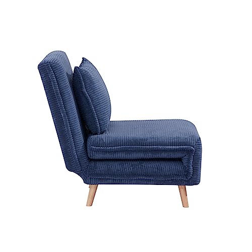 EVERGREENWEB - Poltrona Letto trasformabile | Poltrona letto con Materasso singolo e cuscino imbottito | Divanetto clic clac con Schienale Regolabile 1 posto con gambe in legno | Blu |Velvet 80