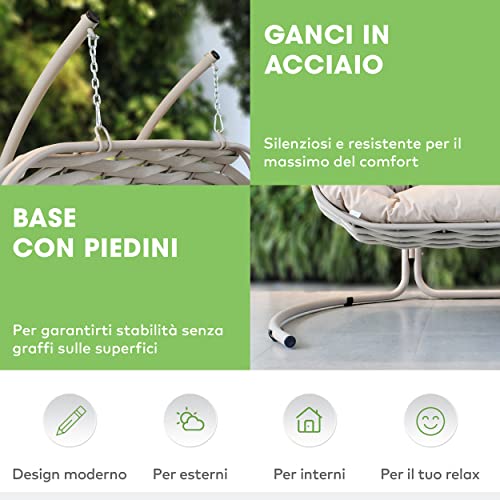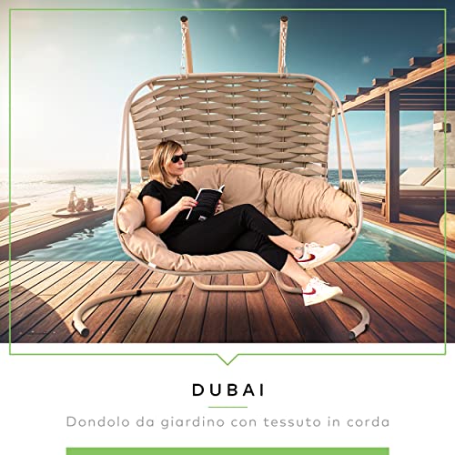 Il dondolo Dubai e unico nel suo genere, una poltrona sospesa che unisce design e comfort, sarà il compagno ideale per le tue serate in giardino. Accogliente e di ottima qualità è la poltrona sospesa per il tuo giardino. Goditi dei bellissimi momenti di relax nel giardino o nel terrazzo di casa tua con la nuovissima poltrona nido a dondolo sospesa, ottimo anche per l'interno della tua casa.