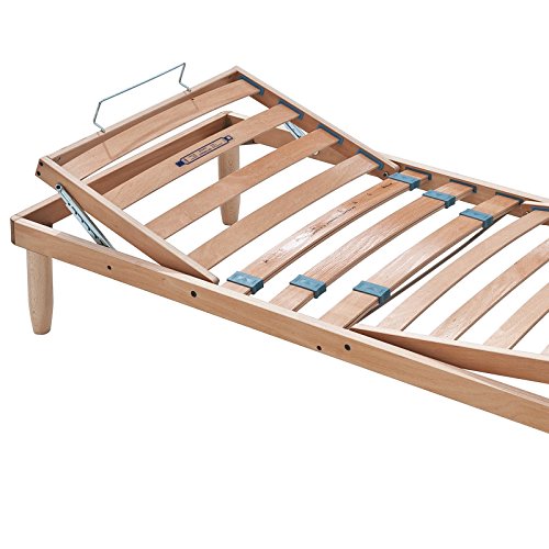 Evergreenweb - Rete Singola 85x190 a Doghe in Legno Naturale Faggio Alzata Manuale ALZA Testa e Piedi Pieghevole Ortopedica Base Letto o Materasso con Regolatori Rigidità 4 Gambe Smontabili, Offerta