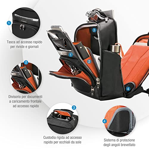 Comfort: Gli spallacci ergonomici e ben imbottiti offrono il massimo comfort. Il pannello posteriore e i canali del flusso d'aria garantiscono la massima circolazione per la traspirazione