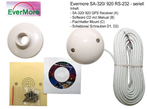 Evermore SA-320 Ricevitore satellitare per marina militare a 12 canali, con GPS e con interfaccia RS-232 per Yacht, Scialuppa e motoscafo, Collegabile a strutture da 9-24 V con cavo dati NMEA aperto, Sensibilità: - 143dBm
