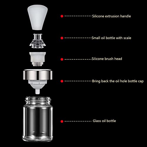 【Alta Qualità】La spazzola per olio in silicone con tappo e bottiglia dell'olio adotta una testina in silicone alimentare, resistente alle alte temperature e facile da pulire. che è sicuro e non tossico, nessun odore particolare, resistenza alla corrosione, stabilità termica, buona tenuta all'aria e durata, sicurezza e salute e impedisce efficacemente che la polvere entri nella bottiglia corpo.