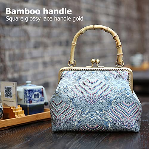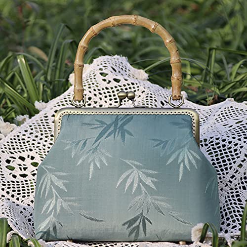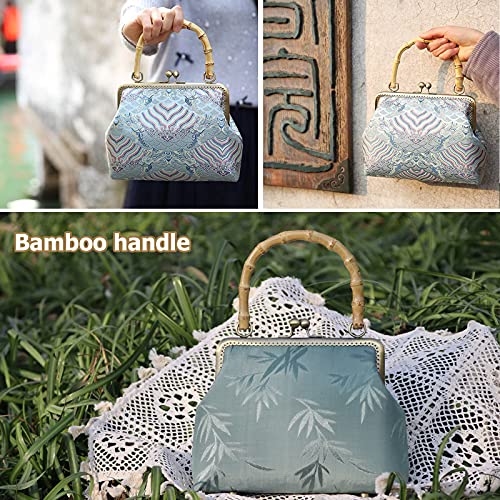【Design Unico】Il manico in bambù è fuso con il design in metallo Chiusure portamonete clic clac e l'elegante incisione retrò è nobile ed elegante e può essere abbinata a una varietà di stili.