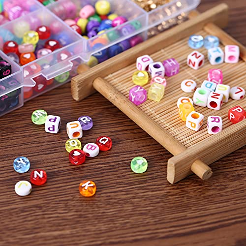 Everpertuk Perline Colorate Braccialetti Fai da te Perline Lettere Set Perline per Gioielli 700 Pz Perline Quadrate&Rotonde, Numero&Lettere Dell'Alfabeto& Modello Perline Charms Acriliche Braccialetto