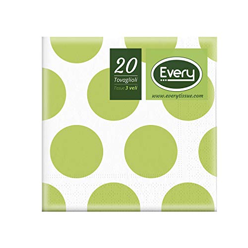 Every E243-D100, Tovaglioli, Carta, Verde, 12x12cm (chiusi), 24x24 cm (aperti), 20 Unità