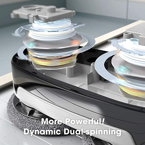 Pulizia potente e delicata: senza ruote! Esegue contemporaneamente sia la guida che la pulizia utilizzando 2 mop di forma rotonda. Questa si chiama "Tecnologia dinamica a doppia rotazione" brevettata da EVERYBOT INC. Pulisce il pavimento con una pressione di 3,6 libbre con il proprio peso e con i cuscinetti del mop a rotazione rapida. Inoltre, 2 cuscinetti per mop progettati rendono disponibili per pulire i bordi e gli angoli in modo elaborato. Tuttavia, è anche silenzioso