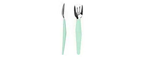 Contiene: 1x Everyday Baby Posate in acciaio inox con manico in silicone, Learn to Eat, Set da 2 pezzi, A partire da 12 mesi, 1 forchetta, 1 cucchiaio, Materiale: Acciaio inox/Silicone, Colore: Mint Green, 30812 0301 01