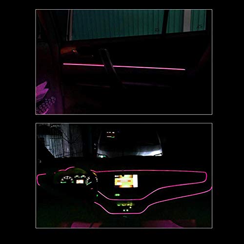 EVGATSAUTO Striscia luminosa interna per auto Atmosfera al neon Striscia luminosa incandescente Illuminazione interna Auto LED EL Parti di modifica della lampada Striscia per auto 4 metri(ROSA)