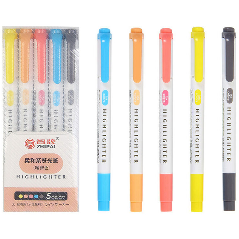 Specifiche: Nome: set di evidenziatori Stile: A/B/C/D/E Colore (opzionale) Quantità: 5 pezzi/set Materiale penna: involucro in plastica, punta in fibra Doppia punta: punta fine (1,2 mm), punta a scalpello (3,8 mm) Dimensioni: 15 cm Lista di imballaggio: 5 * Evidenziatori