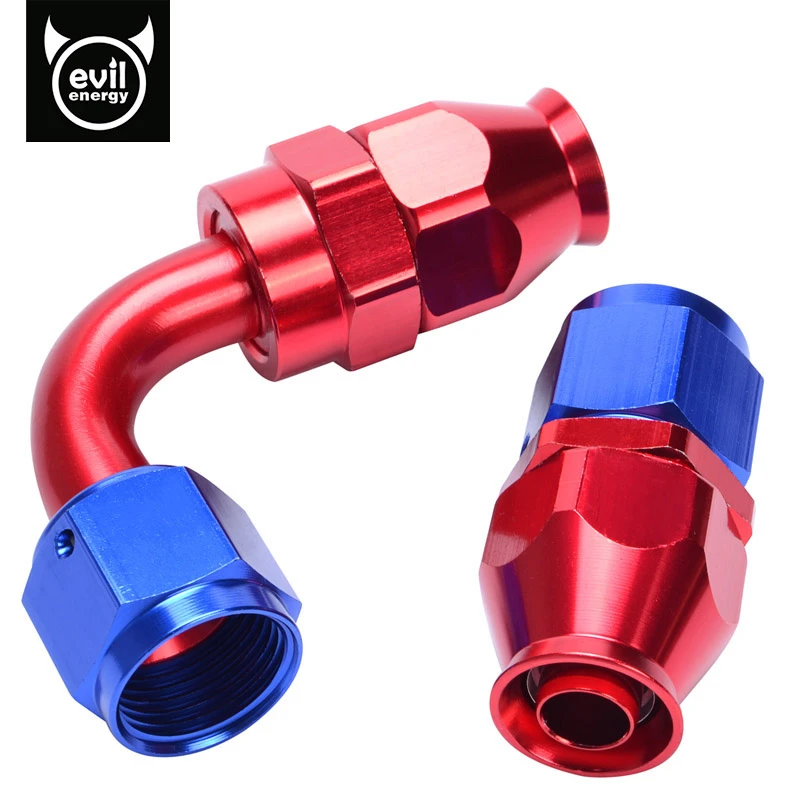 Evil energy AN8 Universal PTFE Hose End 8 AN 0/90 Degree Adapter Aluminum Fitting For PTFE Oil Fuel Line Red + Blue