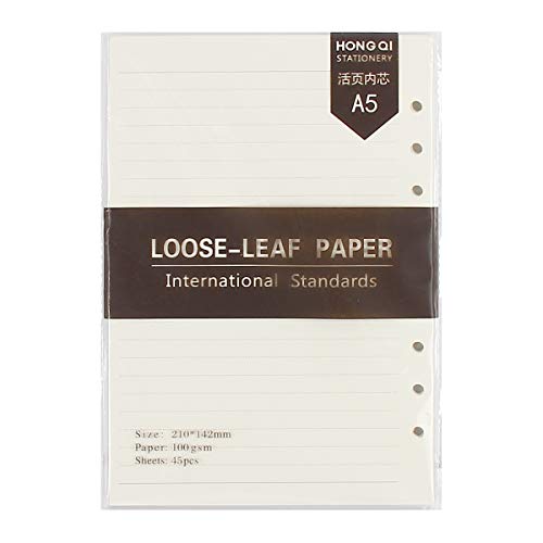 Evilandat 3 confezioni di ricarica di carta a 6 fori formato A5 21 x 14,2 cm per raccoglitori, 45 fogli/90 pagine a confezione A5, Lined White Paper