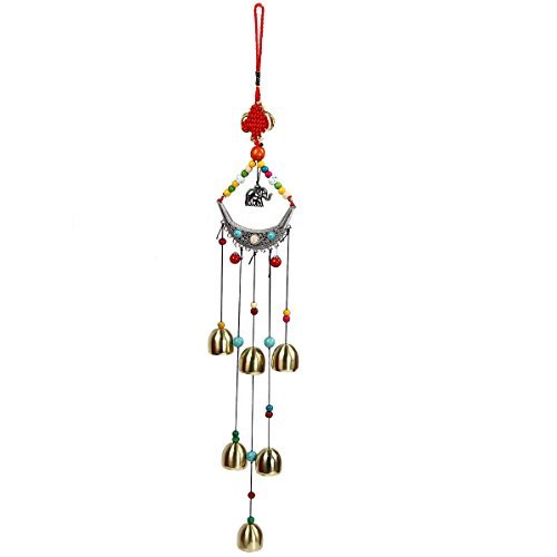 6 campane in rame. Decorato con sonagli, mezzaluna, elefante e nodo cinese.