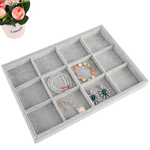 Evilandat, vassoio portagioie in velluto grigio, custodia organizer da 35 x 25 x 4 cm, Grey, Necklace box