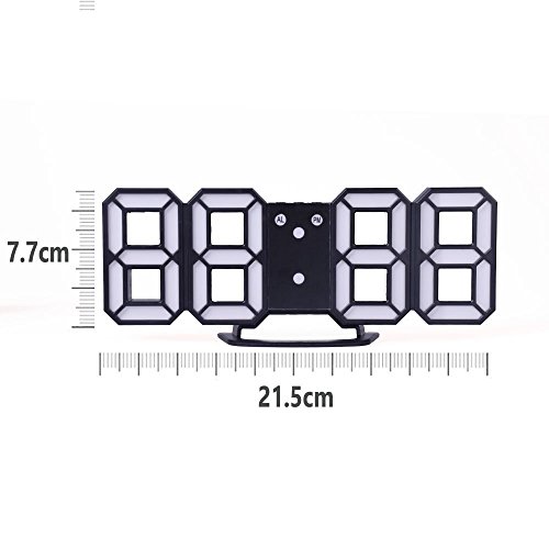 EVILTO 3D LED Digitale Sveglie, Moderna Scrivania da Parete Orologio da Tavolo 24/12 Ora Display, 3 Livelli di Luminosità, Funzione Snooze, Memoria Automatica per Home Office School (Nero/Bianco)