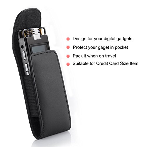 Made from premium PU leather, no smell, durable, custom size, ideal for digital voice recorder carry, compatible for similar size voice recorder, product size: 3.85 x 2.1 x 0.6 inch (flexible design, the height could stretched to 0.8inch )