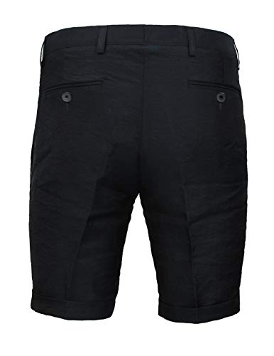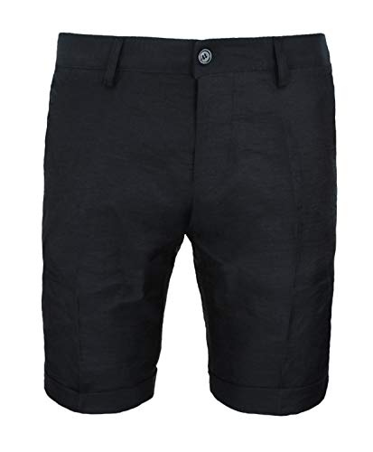 Evoga Bermuda Uomo in Lino sartoriali Nero Casual Eleganti Pantaloni Corti Estivi (50, Nero)