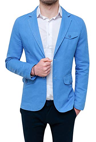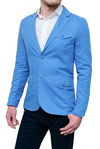 Evoga Giacca Uomo Estiva Celeste in Lino Blazer Formale Elegante (S, Celeste)