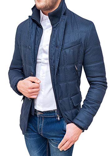 Evoga Giaccone Uomo Class Invernale Blu Soprabito Giacca Casual Elegante (XXXL, Blu)