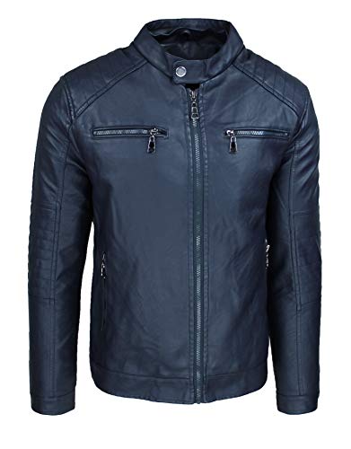 Evoga Giubbotto Giacca Uomo Ecopelle Slim Fit Giubbino Bomber Coreana Moto (XXL, Blu Scuro)